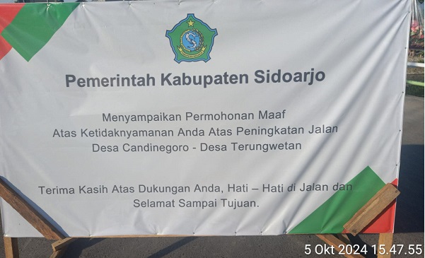 Salah satu contoh uraian di atas adanya proyek pembangunan Peningkatan Jalan Candinegoro-Terungkulon Kecamatan Wonoayu Tahun Anggaran APBD Kabupaten Sidoarjo 2024.