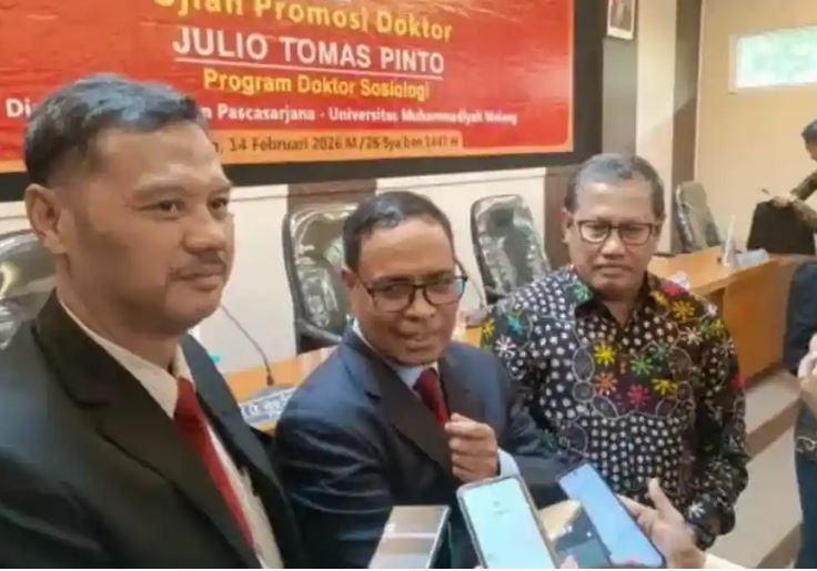 Nia defende nia disertasaun kona-ba transformasaun militar Timor-Leste husi base luta ba institusaun profisionál iha sala sidang doktorál iha **Universidade Muhammadiyah Malang (UMM)**, Sabadu, loron 14 Fevereiru 2026.