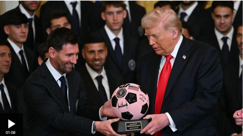 TIMOROMAN.COM-Lionel Messi dan rekan-rekan setimnya di Inter Miami bertemu dengan Presiden Amerika Serikat Donald Trump di Gedung Putih untuk memperingati kemenangan klub tersebut di MLS Cup .