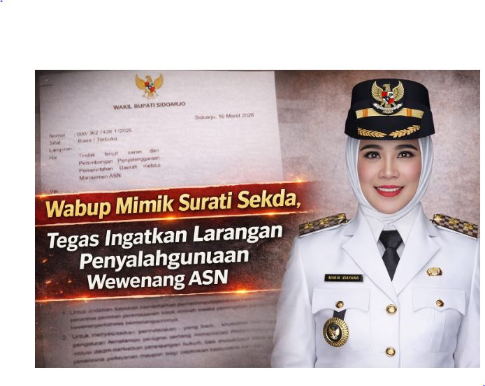 TIMOROMAN.COM-Wakil Bupati Sidoarjo, Hj. Mimik Idayana, melayangkan surat resmi kepada Sekretaris Daerah (Sekda) Sidoarjo, Fenny Apridawati, terkait penguatan tata kelola manajemen Aparatur Sipil Negara (ASN) di lingkungan Pemerintah Kabupaten (Pemkab) Sidoarjo.